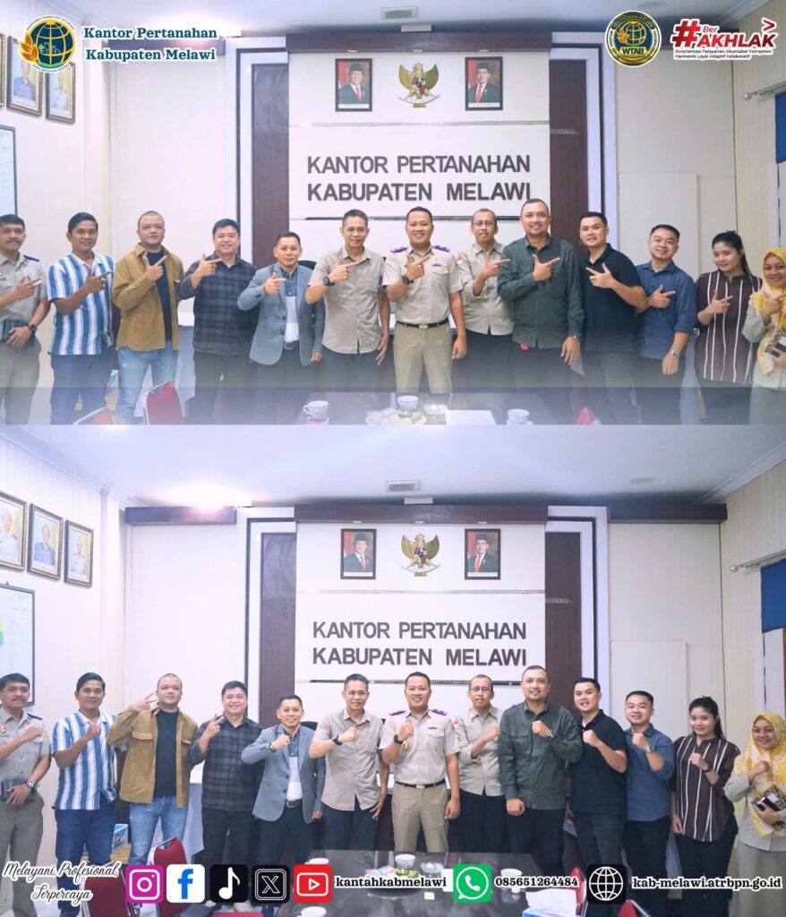 Kantor Pertanahan KabupatenMelawi menggelar rapat koordinasi dengan Pejabat Pembuat Akta Tanah (PPAT). Rapat ini bertujuan untuk meningkatkan sinergi antara Kantor Pertanahan Kabupaten Melawi dan PPAT di Kabupaten Melawi. Kegiatan ini dipimpin langsung oleh Kepala Kantor Pertanahan Kabupaten Melawi, Bagus Ariyadi, S.E. Pada Selasa 09 September 2025. Bertempat di Aula lantai 1.